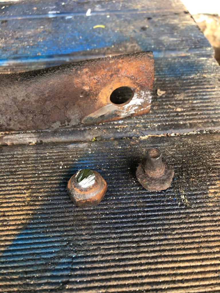 This was such a pain. The passenger side captive nut was good but the driver side was a mess. It looks like someone had tried to fix this a long time ago but it had rusted out. I was able to remove the crossmember with the driver side bolt still attached. Queue my purchase of a cheap (but very good) angle grinder. It made short work of the bolt (very satisfying).