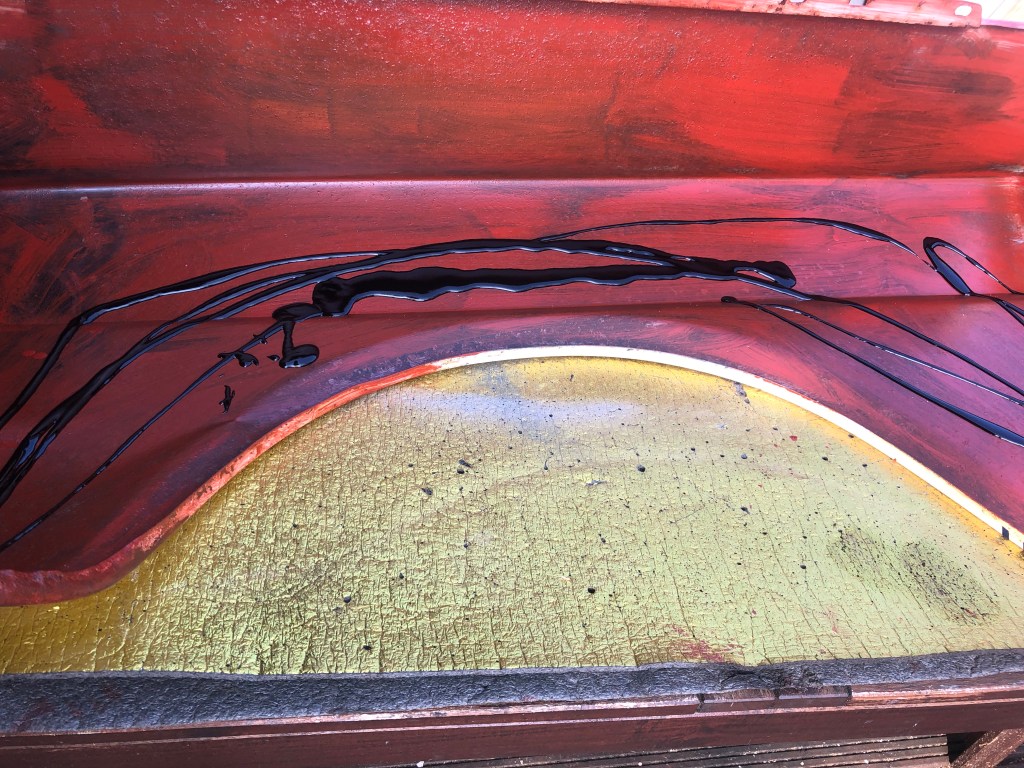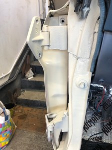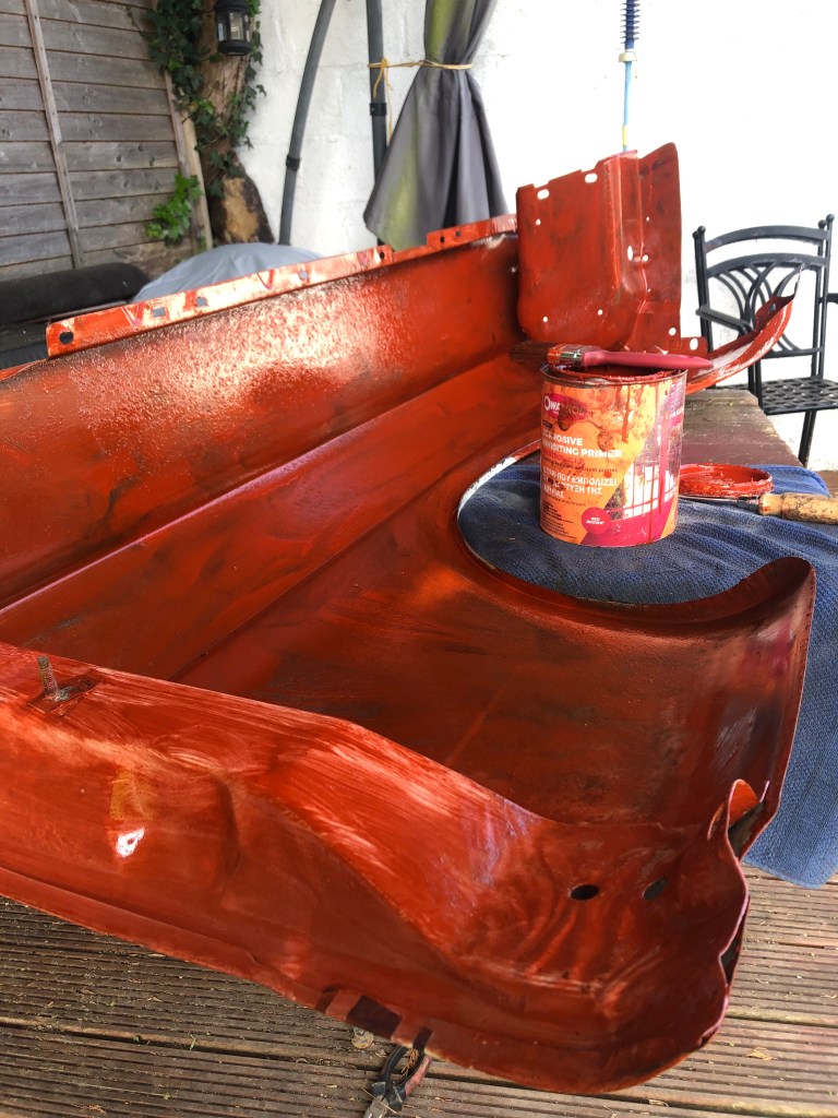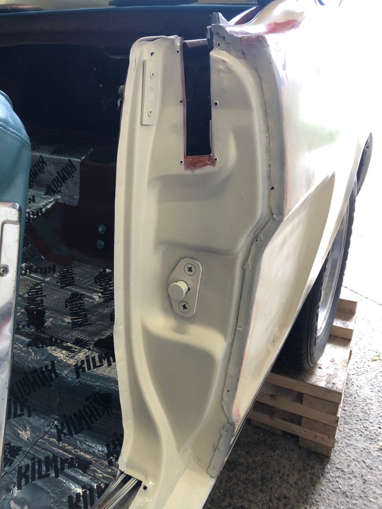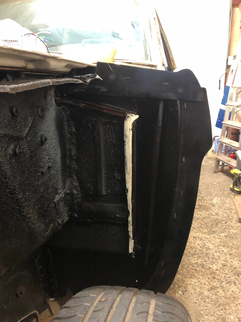 I also painted the fender end door jam area whilst the door was off as shown in the two above pictures. On to the passenger side fender now….
