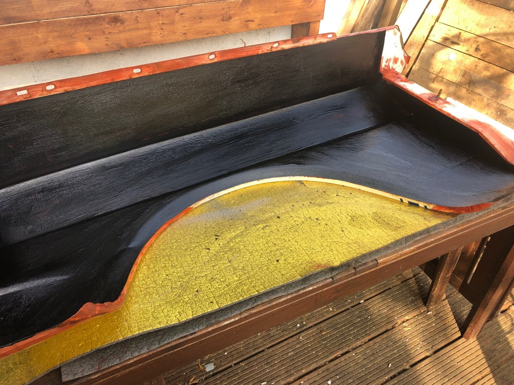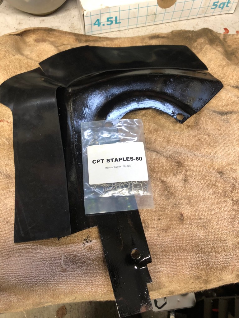 I painted the splash guard panel and then installed new rubber. This is attached with staples and was a really fiddly job but eventually it was done.