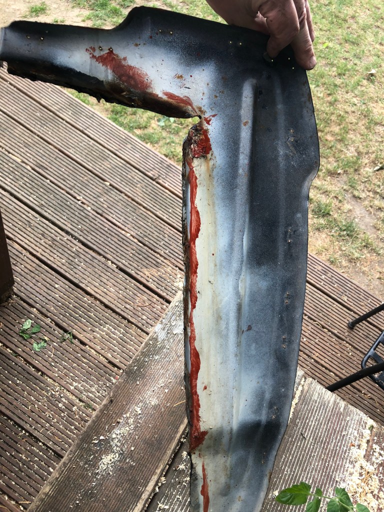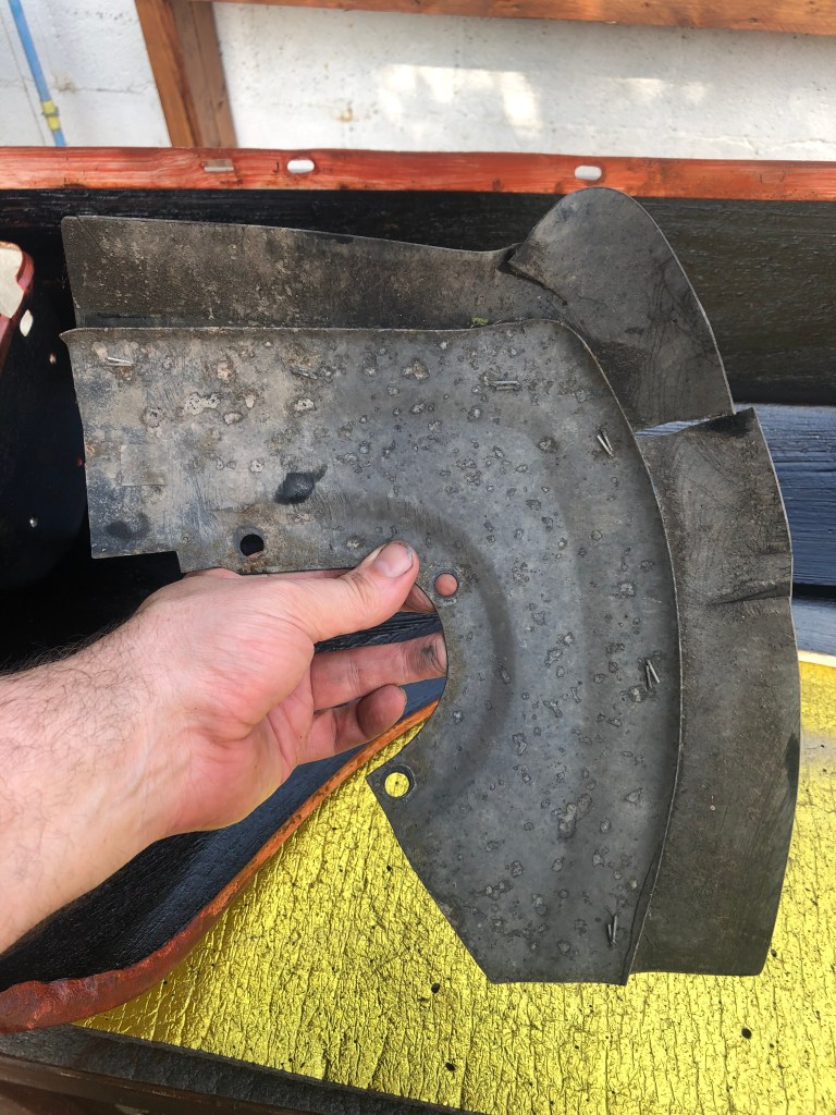 I needed to remove the drivers side fender to remove the door so I decided to refurb both fenders as they were coated in surface rust. The rubber splashguards were falling to pieces so I’ll replace them also.