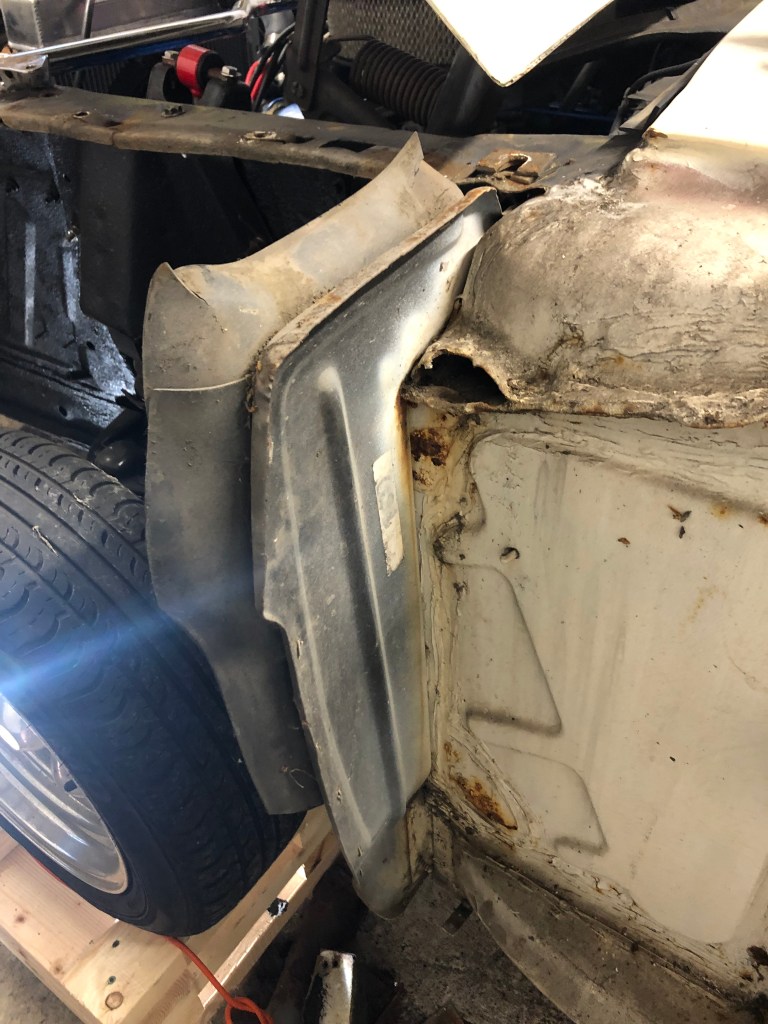 Now I need to figure out the best way to use the new panel. The panel arrived with the outside flange (which connects to the rocker) bent down which is for convertibles. It should be bent up for Coupe’s & Fastback’s. Its’s a major pain because I will need to bend it myself. The good news is that the pieces don’t look bad just sitting there 🙂