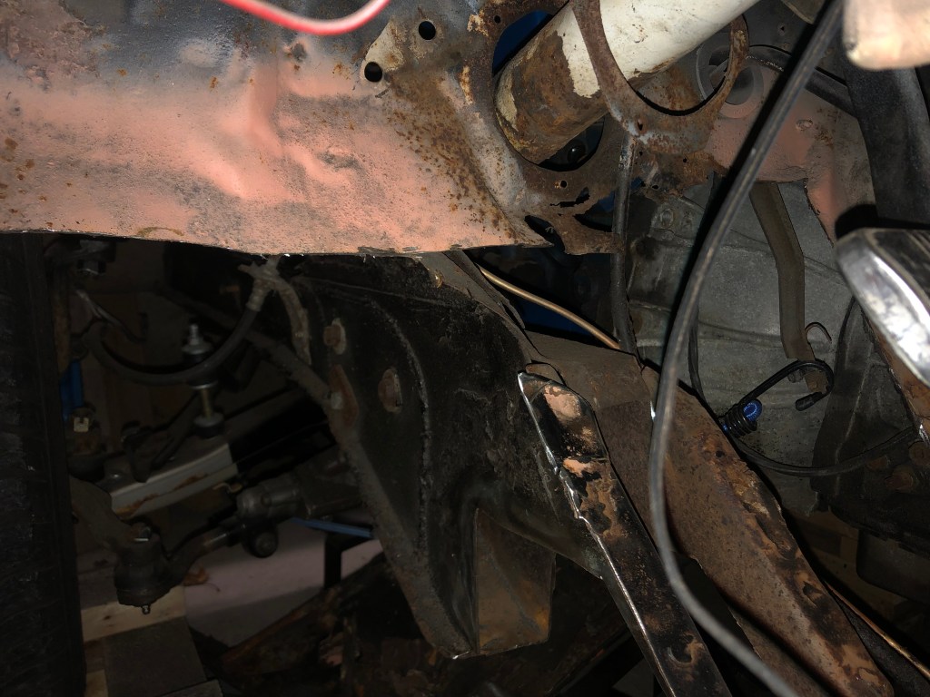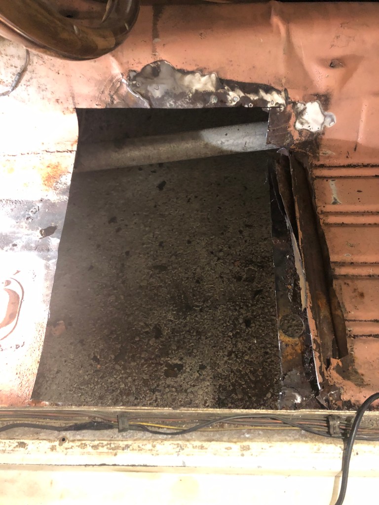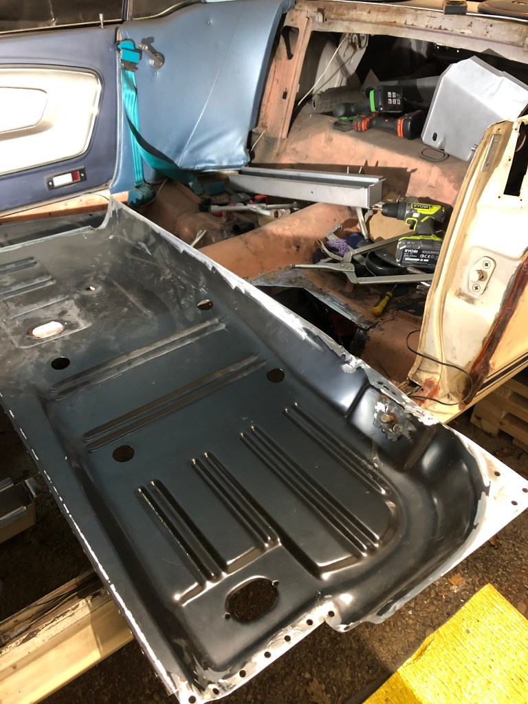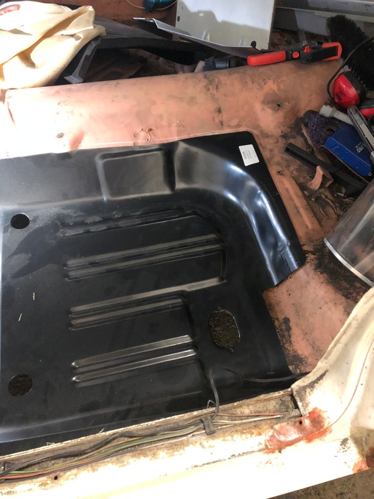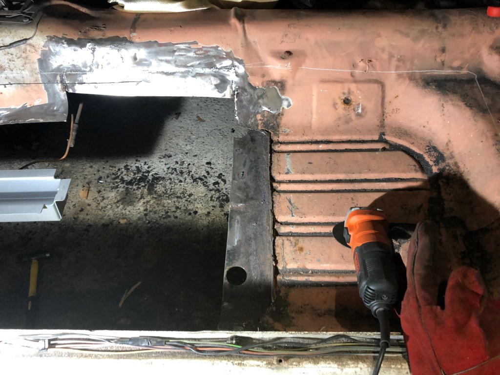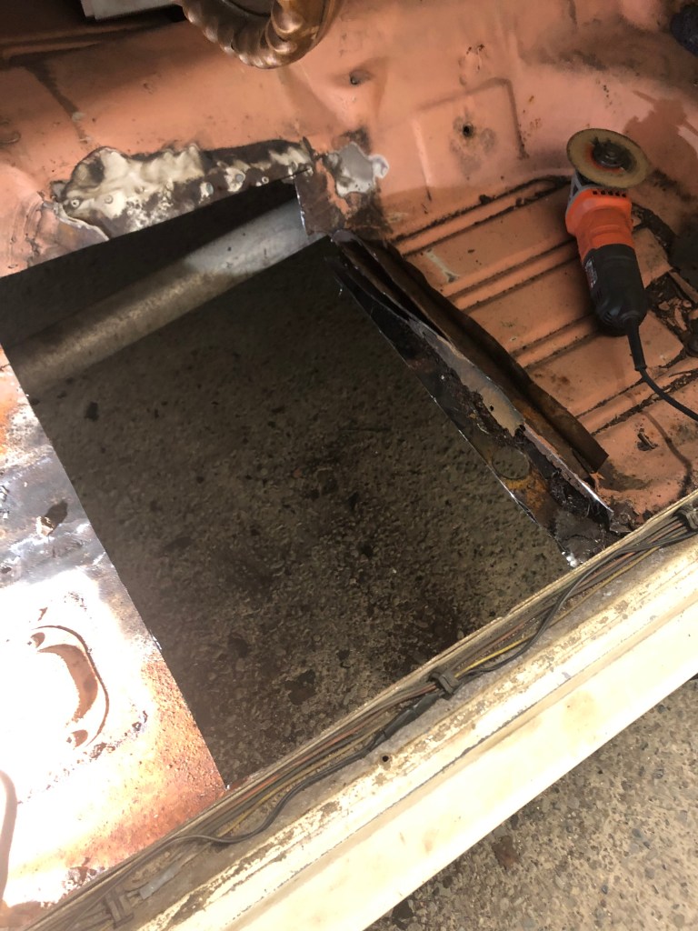 27th October 2021 – Well I’ve done some more cutting, mainly around the tunnel support and kick panel. I found that a previous owner had patched the kick panel before but didn’t bother to spot weld it to the frame rail or tunnel support!. This explains the warped floor panel.