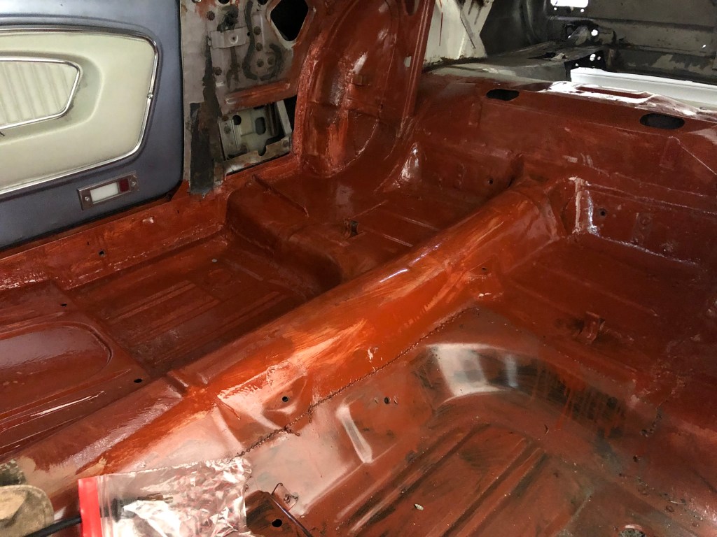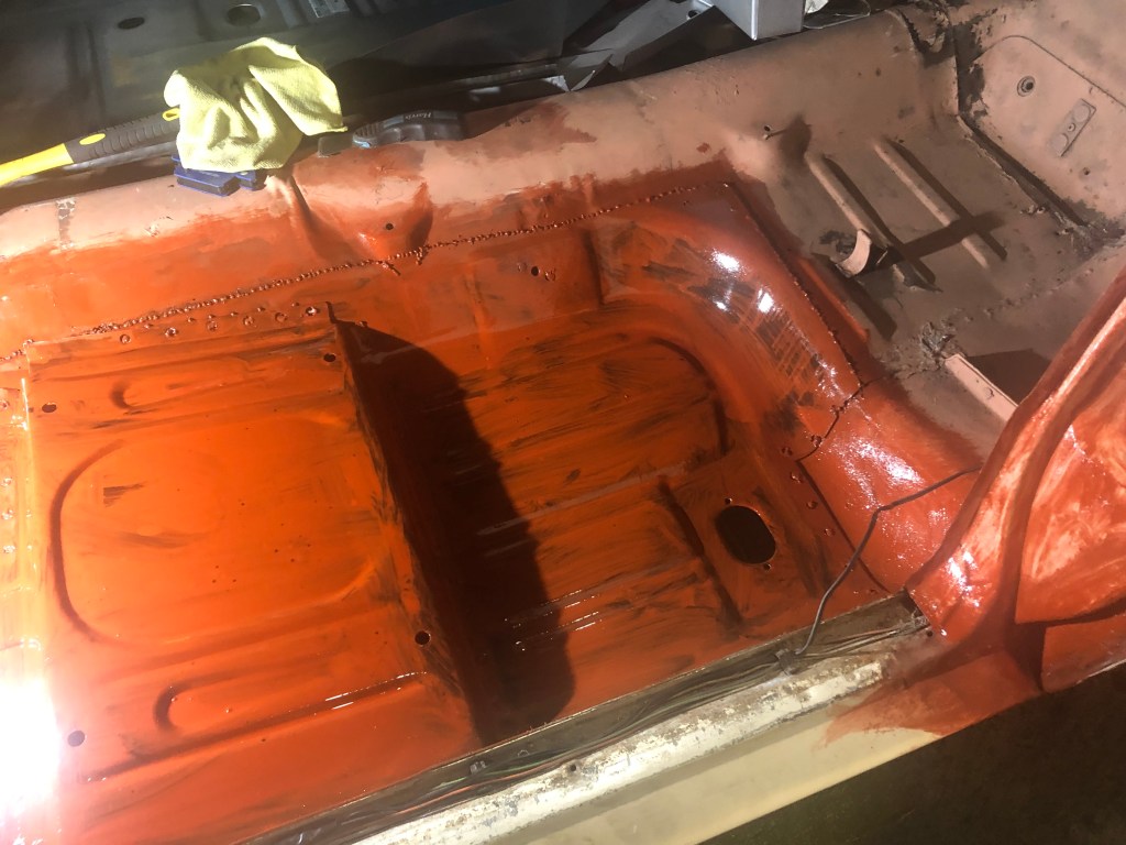I decided to prep the rest of the floor in readiness for seamsealer. I removed loads of dirt & surface rust before brushing on rust prevention undercoat.