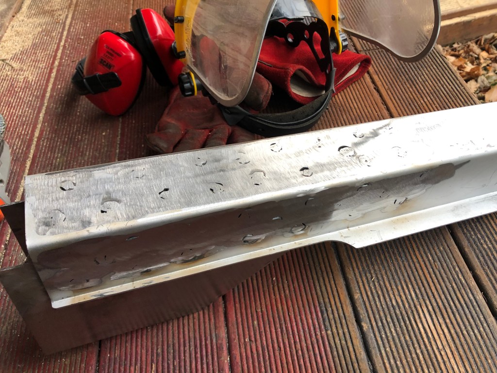 I was pleased with how the spot weld removal tool worked (although the drill I was using was under powered). I then used the appropriate tools (screw driver and a hammer!) to peel back the steel before moving on to the next spot weld. You have to be careful not to cut the steel behind, which I managed to do twice however I’m going to need to patch the rail so I’ll be cutting a lot of this out.
