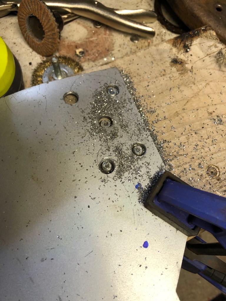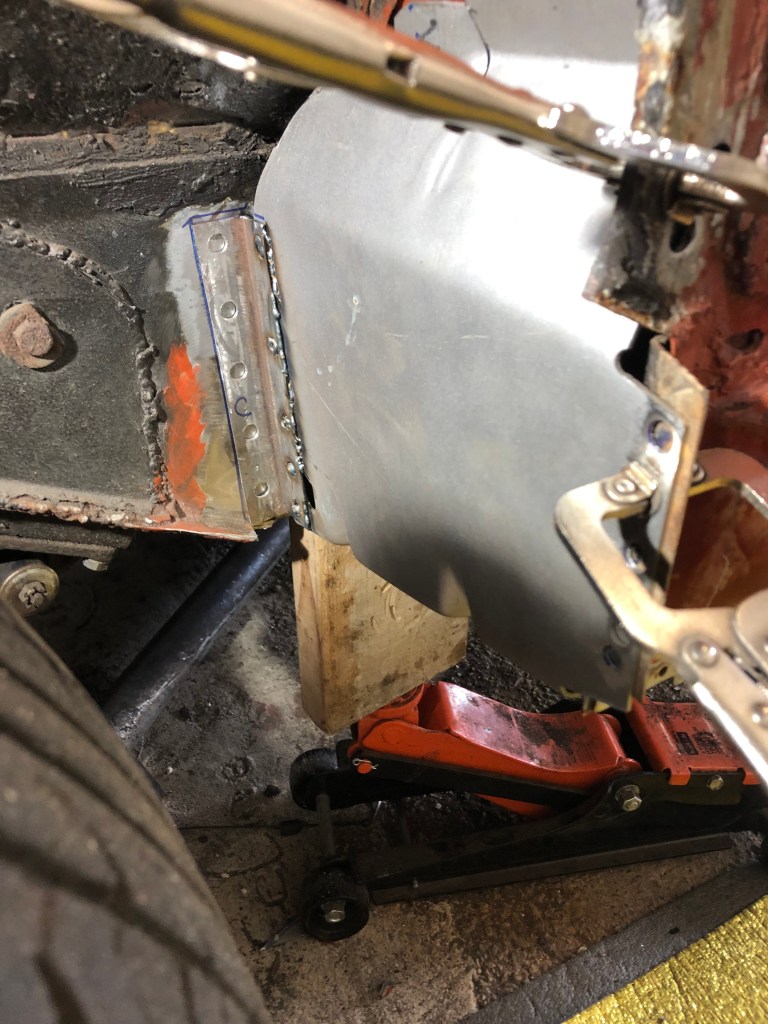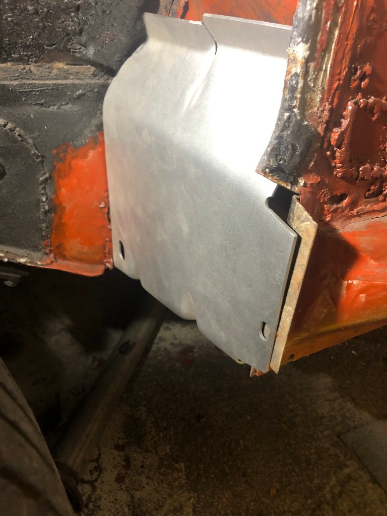 A lot of tweaking was necessary before the gaps were workable. As I had to cut off the frame rail side flange to make it fit, I decided to weld on a new one which allowed me to plug weld it to the frame rail. It’s not pretty, but its in.