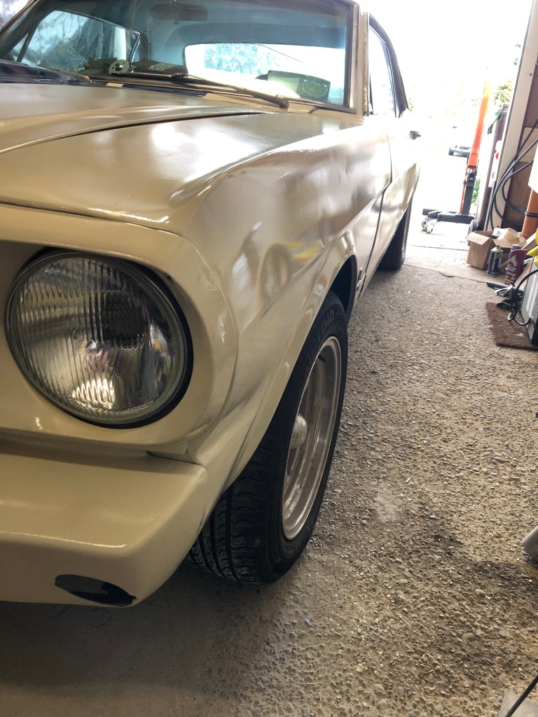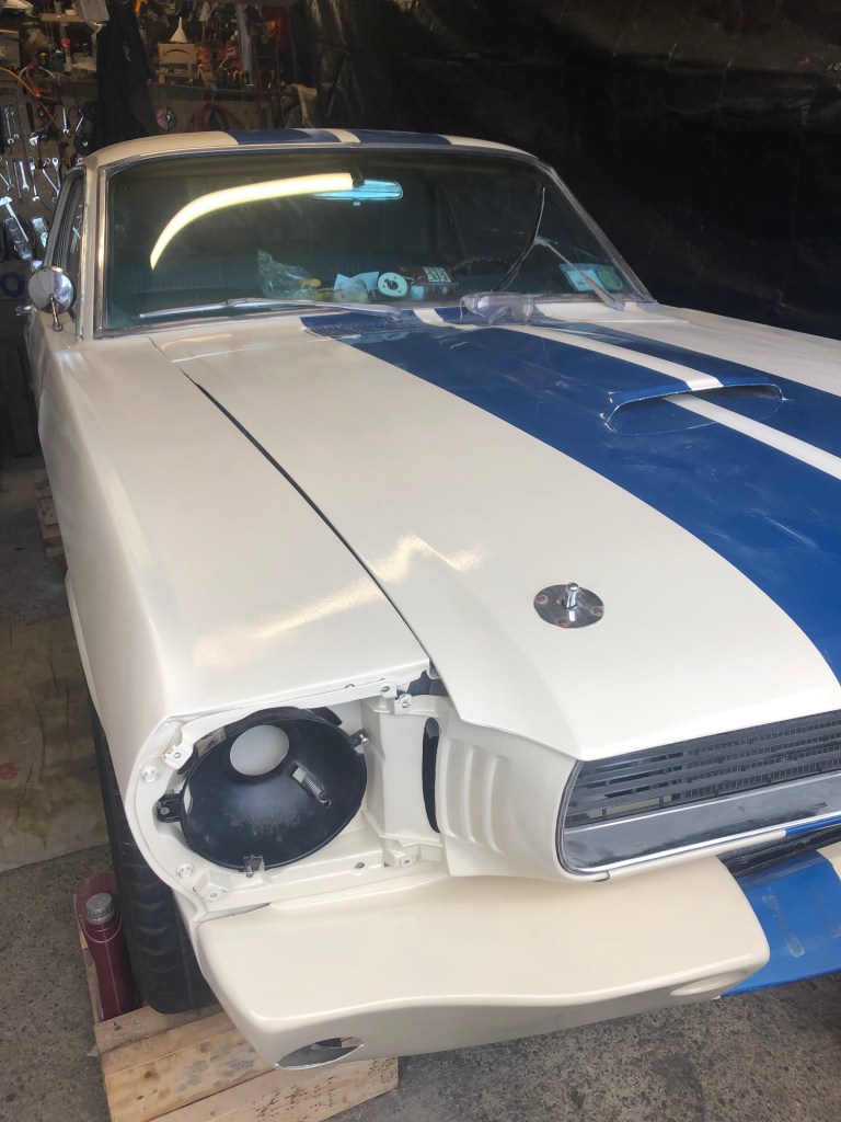 The following week I masked the centre white stripe and painted it along with the door jams and rockers. I was then able to install the headlight buckets and surrounds which felt like real progress.