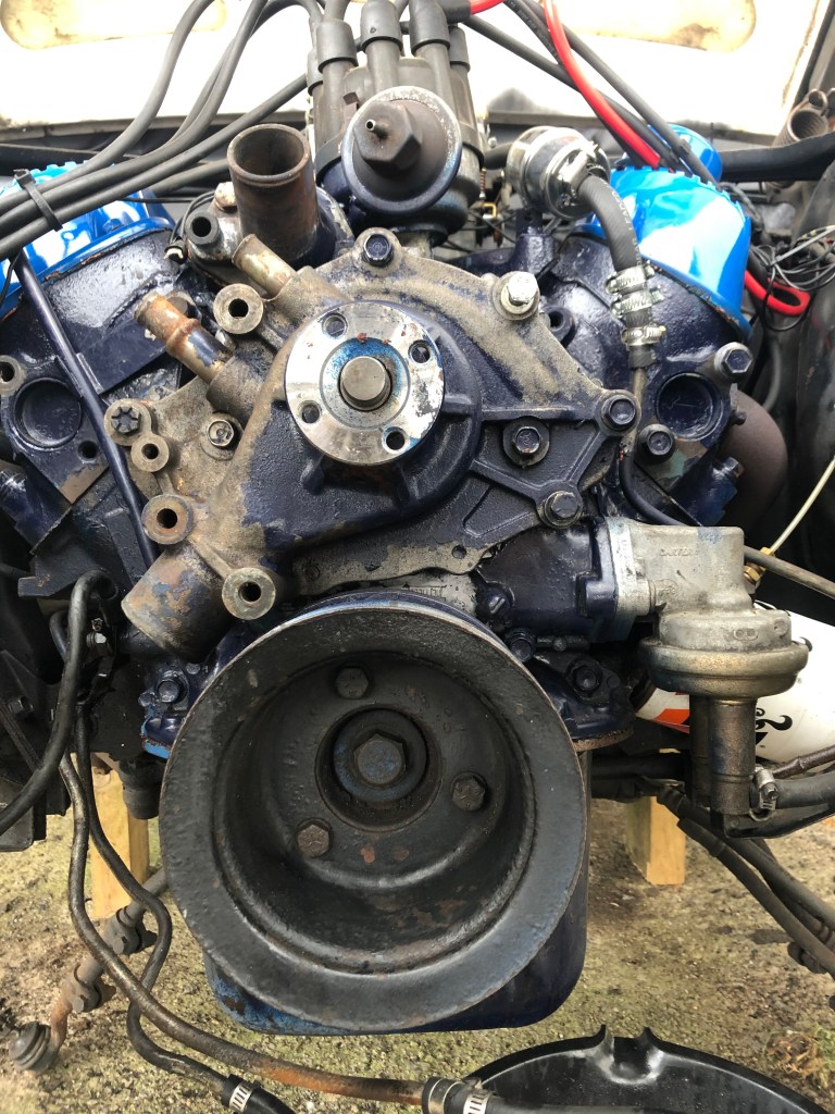 As always, as I start removing things, I decide to remove even more. Power steering pump, alternator, radiator & hoses, carb & spacer, coil mount and distributor cap (but not before adding numbering to each of the leads).
