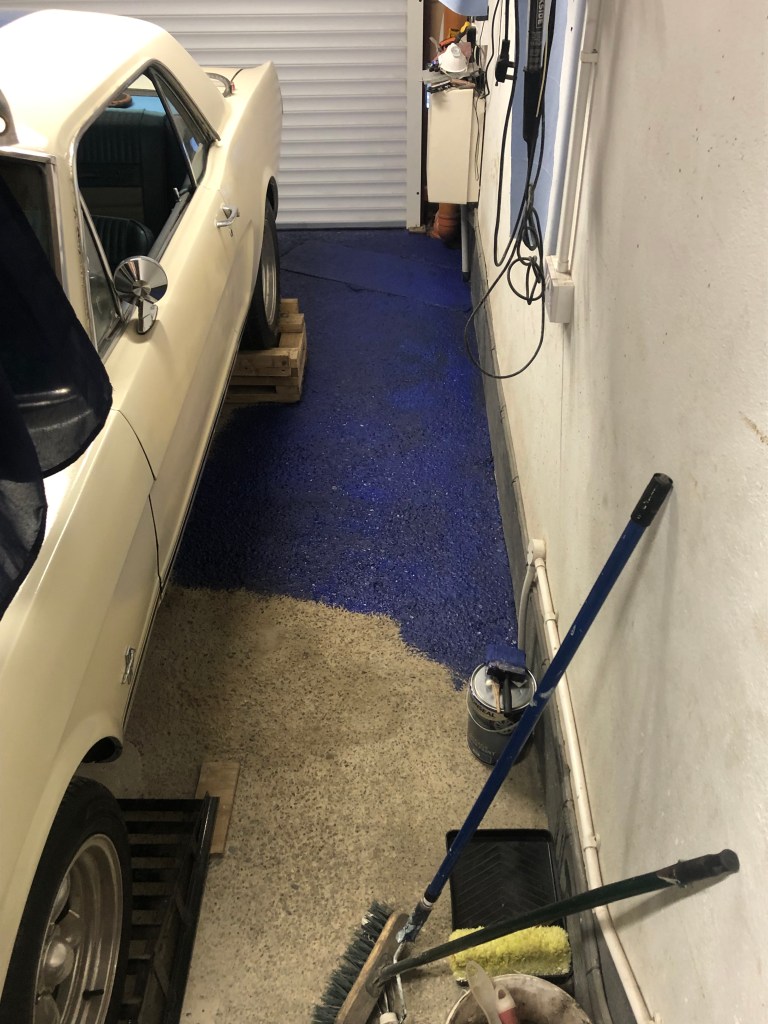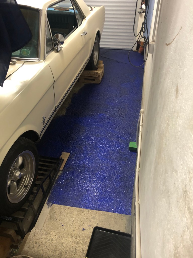 I went with a special garage floor paint in Steel Blue. I’m hoping the weather cooperates so I can leave the car out of the garage for most of the day.