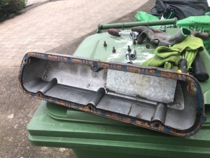 The valve covers had never been in great condition and as you can see in the pictures below, they were oxidising (Not the best of climates in Ireland) so I decided to paint them the same colour as the engine block. I know that it’s not the correct colour for the year, but this colour of high temp paint was available locally, so that’s what colour they were going to be. To be honest, if they work out, I may consider splashing out for the correct colour or even a completely new set. If you are wondering what the hose is in the first picture, it’s a heater core bypass. The core was leaking like a sieve and is now on the ‘to be done’ list.