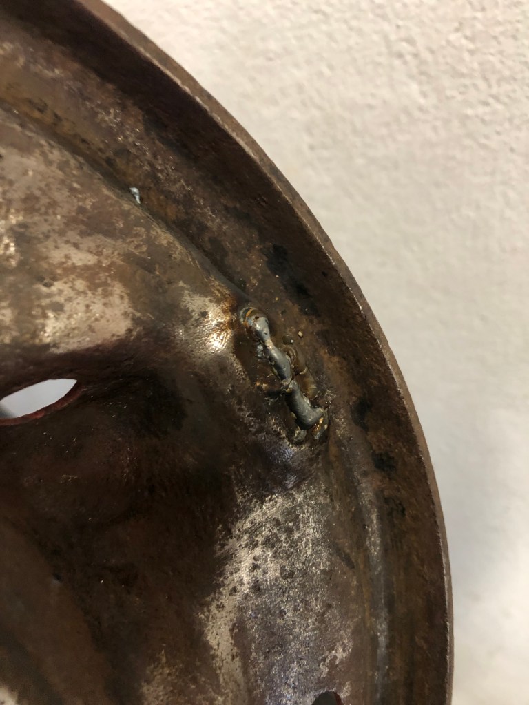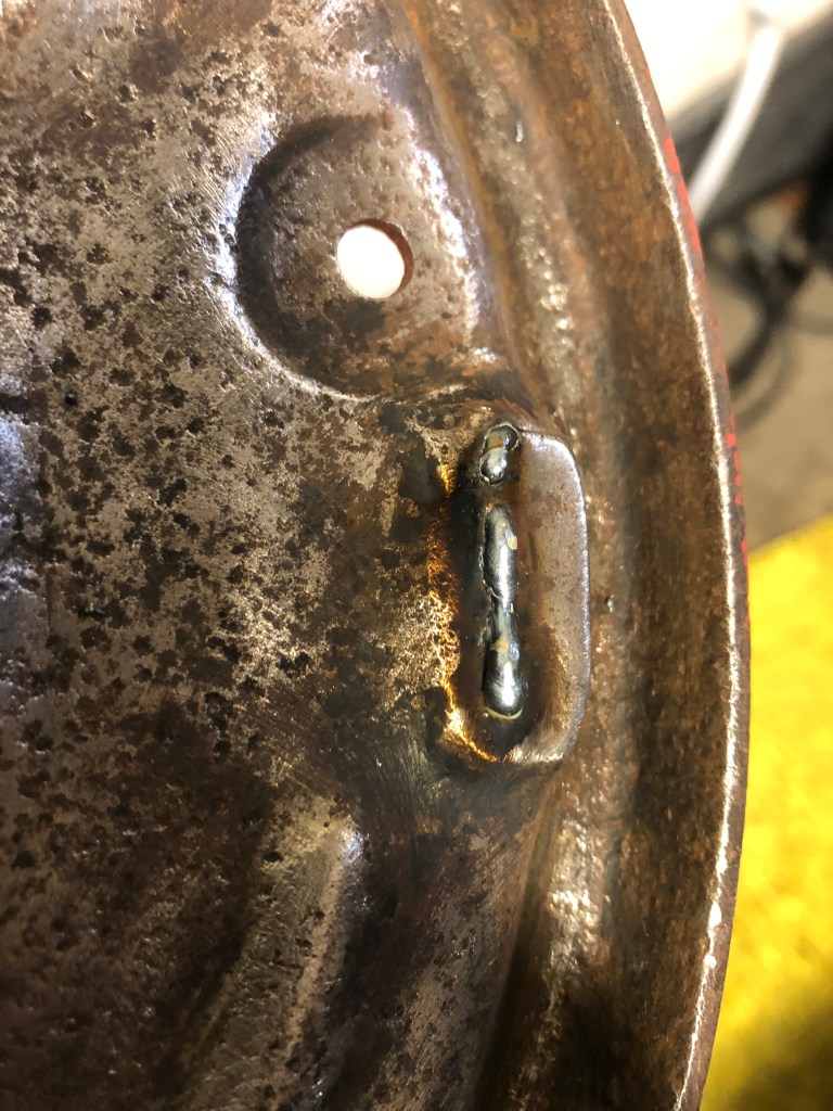 The passenger side axle backing plate has groves in the high spots, designed to stop the brakes from squeaking. I’ve seen a few people add spot welds and then grind them flat, so that’s what I’ll do!