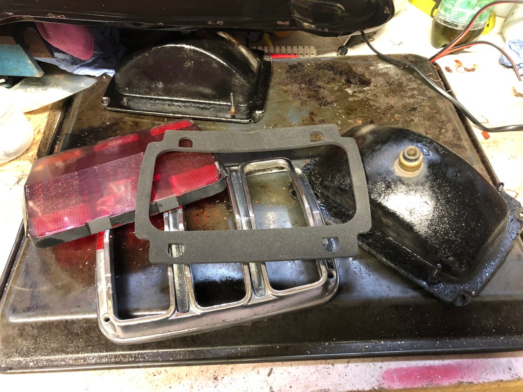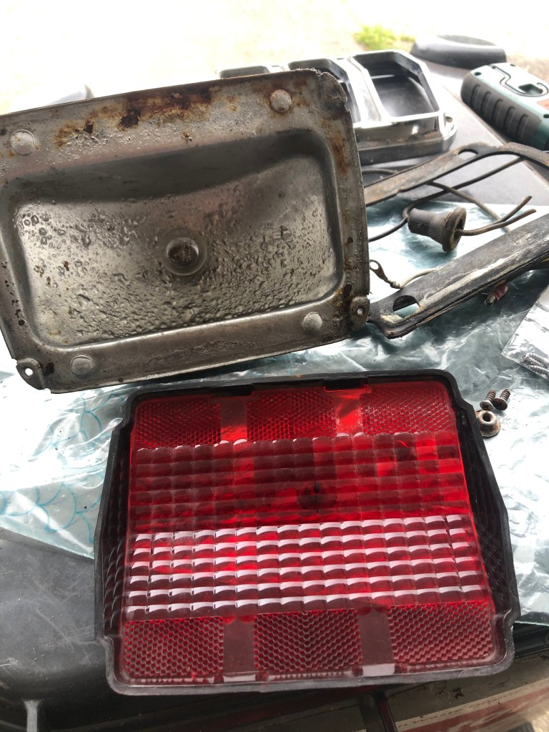 I had removed the lights when I was working on the trunk. The wiring was a mess of many splices and old electrical tape. The units themselves were dirty and rusty so I decided to tidy it all up.