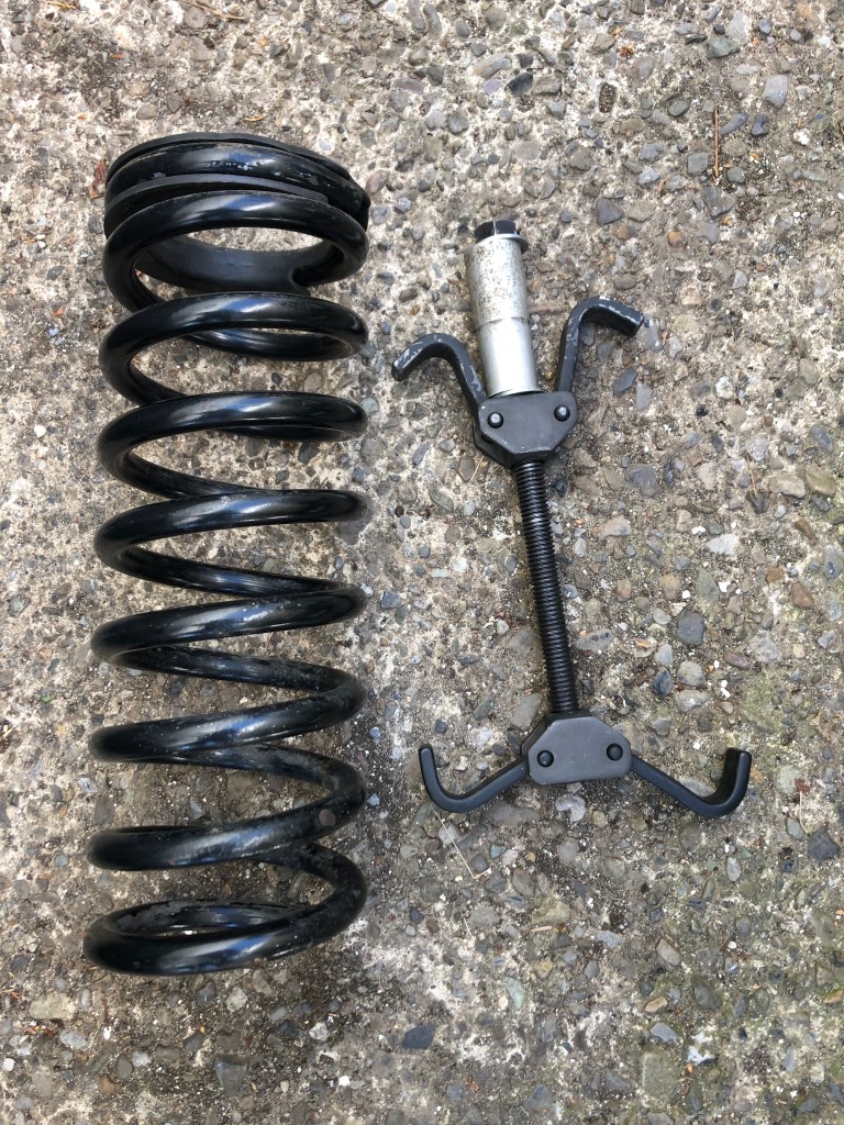 At this point I was able to look at reinstalling the coil springs. But I lose my nerve (and patience) using the 4 hook compressor. I did some research and found that there was an alternative, safer option. The issue is that the tool is not cheap but I decided to purchase it due to the safety benefits. For those that are interested here is the link I used to purchase it – here.