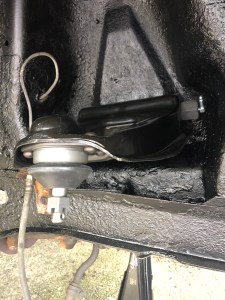 Then I had a bit of a ‘duh’ moment. When researching the best way to approach removing the springs I had seen a number of comments stating that you should remove the top shock bolts before jacking the car. So, I put the wheels back on, lowered it, undid the top shock bolts, jacked her up, removed the wheels and placed the axle stands..again (Good practice).