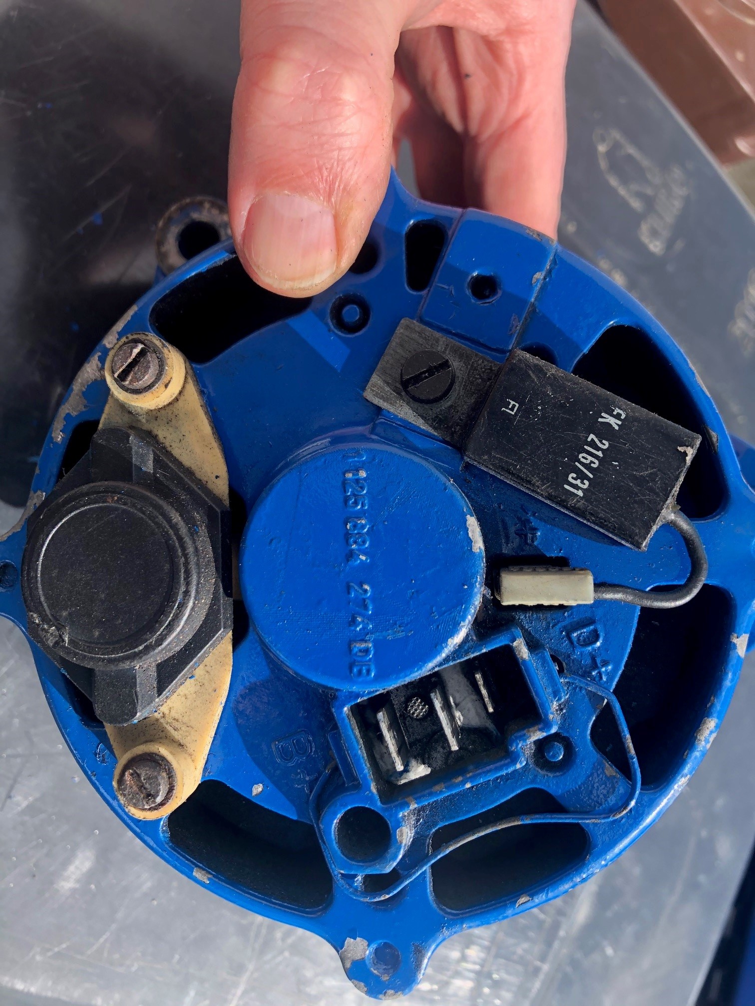 I decided to replace the alternator as the car had developed a horrible intermittent whine. I tried changing the belts, realigning the crank & power steering pulley but no difference. I suspect that the noise is the alternator itself (bushings etc). I quickly found that the alternator in the car was non standard (why am I not surprised!). A quick check of the numbers on the unit shows that it is an internally regulated Bosch unit.